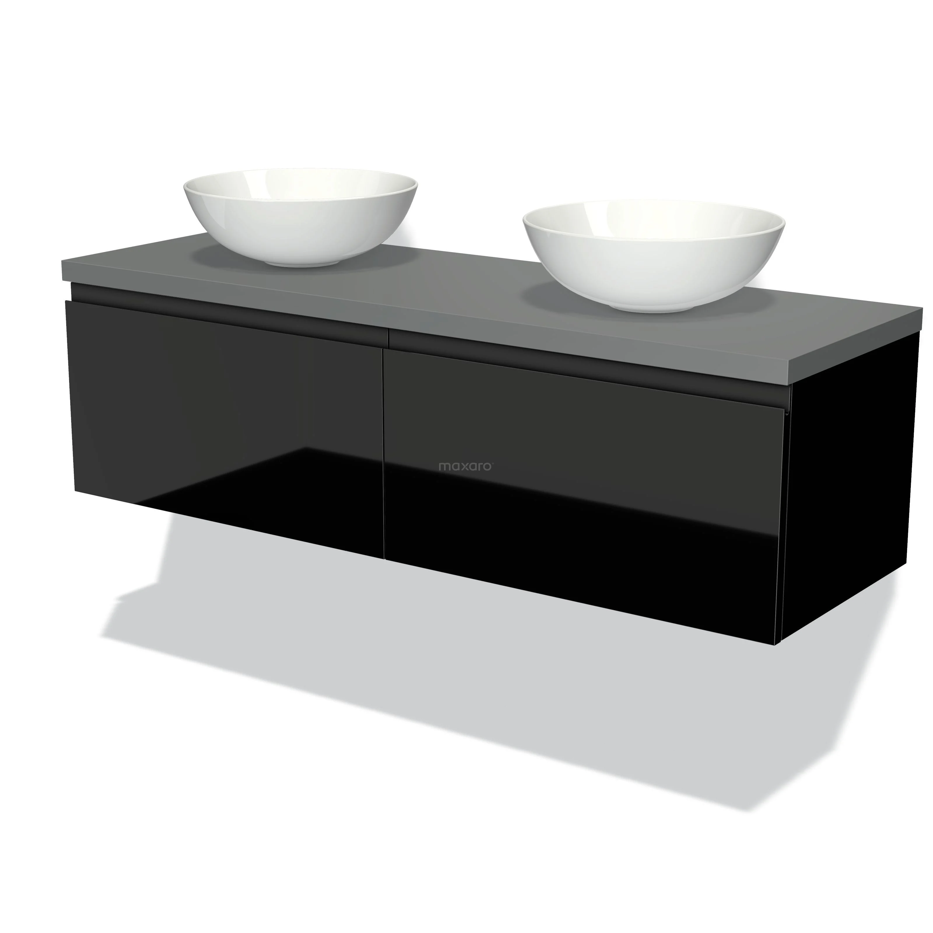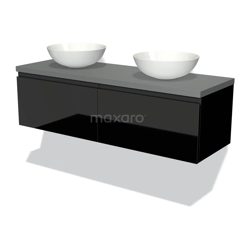 Waschtischunterschrank mit Konsole 140cm Modulo Plato Hochglanz Schwarz 2 Schubladen Grifflos Mittelgrau Platte