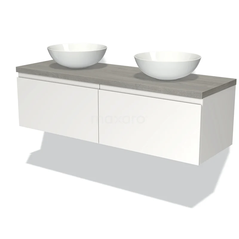Waschtischunterschrank mit Konsole 140cm Modulo Plato Matt Weiß 2 Schubladen Grifflos Graue Eiche Platte