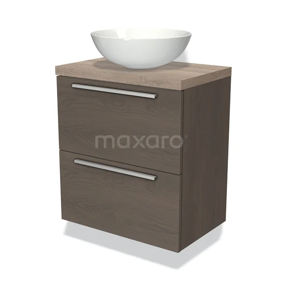 Waschtischunterschrank mit Konsole 60cm Modulo Plato Slim dunkelbraune Eiche 2 Schubladen Flach