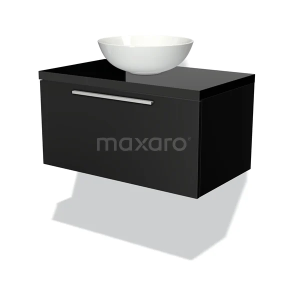 Waschtischunterschrank mit Konsole 80cm Modulo Plato Matt Schwarz 1 Schublade Flach Hochglanz Schwarz Platte