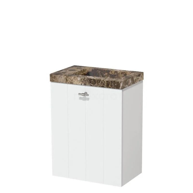 Modulo Pico WC-Möbel mit Waschbecken | 40 cm Matt Weiß Lamellen Front Waschbecken Dark emperador Naturstein