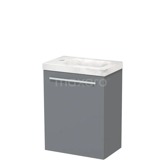 Modulo Pico WC-Möbel mit Waschbecken | 41 cm Mittelgrau Glatte Front Waschbecken Weißer Marmor Naturstein