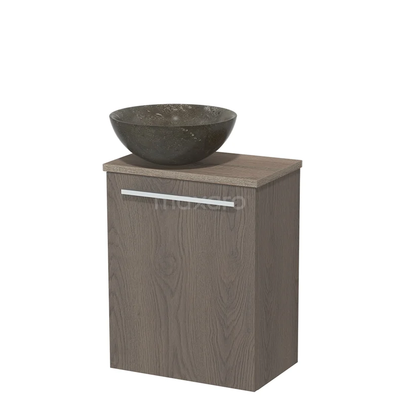 WC-Möbel mit Aufsatzwaschbecken | 41 cm Dunkelbraune Eiche Glatte Front Blaustein Naturstein Aufsatzwaschbecken Eiche Platte