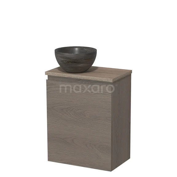 WC-Möbel mit Aufsatzwaschbecken | 41 cm Dunkelbraune Eiche Grifflose Front Blaustein Naturstein Aufsatzwaschbecken Eiche Platte