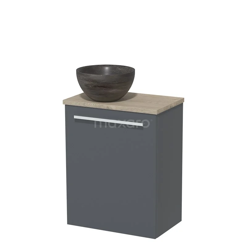 WC-Möbel mit Aufsatzwaschbecken | 41 cm Dunkelgrau Glatte Front Blaustein Naturstein Aufsatzwaschbecken Hellgraue Eiche Platte