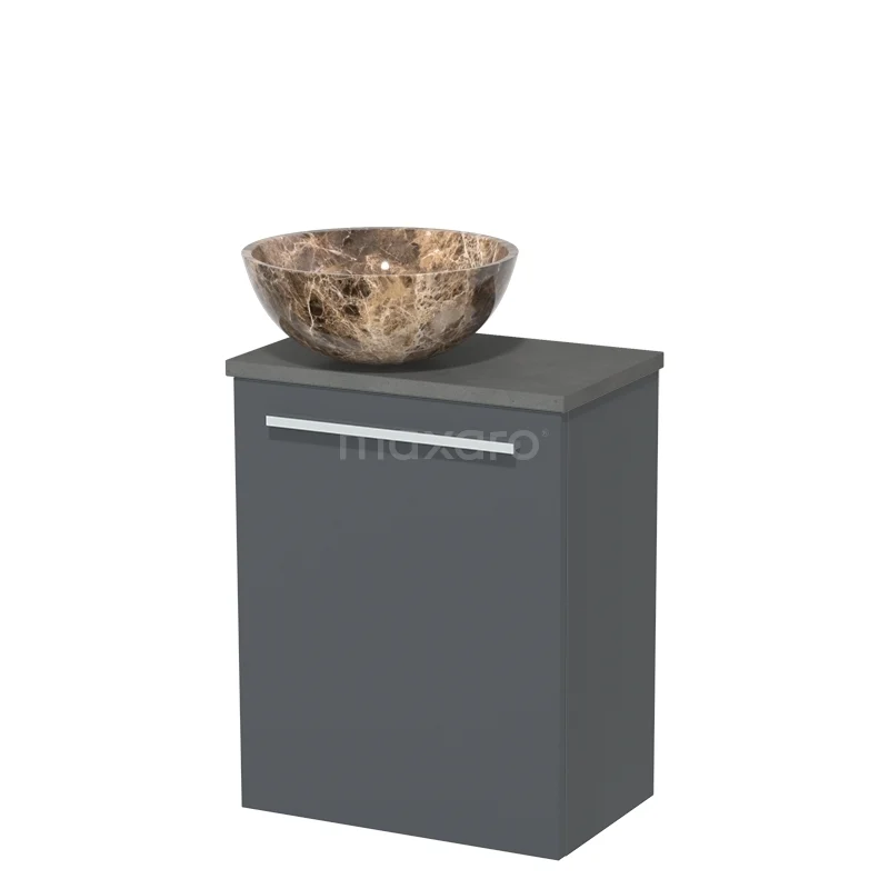 WC-Möbel mit Aufsatzwaschbecken | 41 cm Dunkelgrau Glatte Front Dunkelgraues Aufsatzwaschbecken aus Naturstein Dunkelgrauer Beton