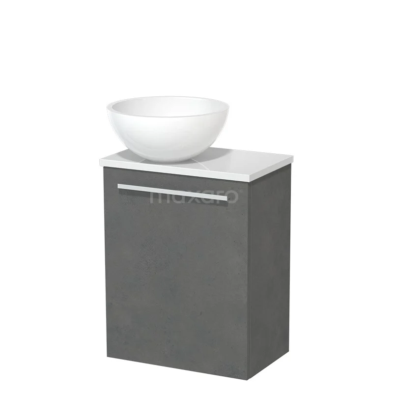WC-Möbel mit Aufsatzwaschbecken | 41 cm Dunkelgrauer Beton Glatte Front Hochglanz Weiß Mineralguss Aufsatzwaschbecken Hochglanz Weiß Platte
