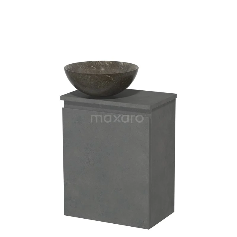 WC-Möbel mit Aufsatzwaschbecken | 41 cm Dunkelgrauer Beton Grifflose Front Blaustein Naturstein Aufsatzwaschbecken Dunkelgrauer Beton Platte