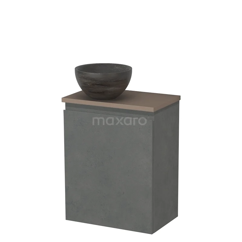 WC-Möbel mit Aufsatzwaschbecken | 41 cm Dunkelgrauer Beton Grifflose Front Blaustein Naturstein Aufsatzwaschbecken Taupe Platte