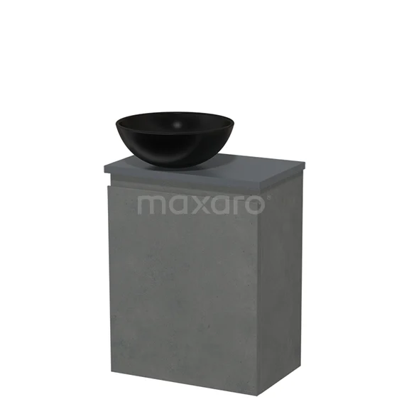 WC-Möbel mit Aufsatzwaschbecken | 41 cm Dunkelgrauer Beton Grifflose Front Matt Schwarz Keramik-Aufsatzwaschbecken Dunkelgraue Platte