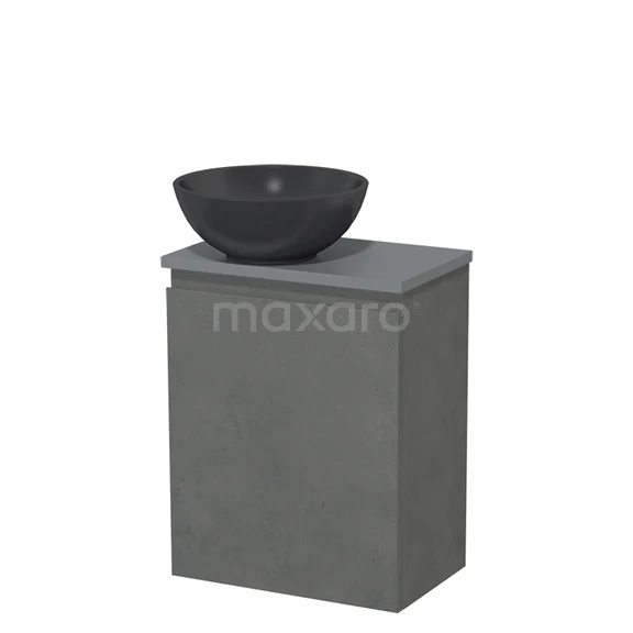 WC-Möbel mit Aufsatzwaschbecken | 41 cm Dunkelgrauer Beton Grifflose Front Matt Schwarz Quarz Aufsatzwaschbecken Mittelgraue Platte