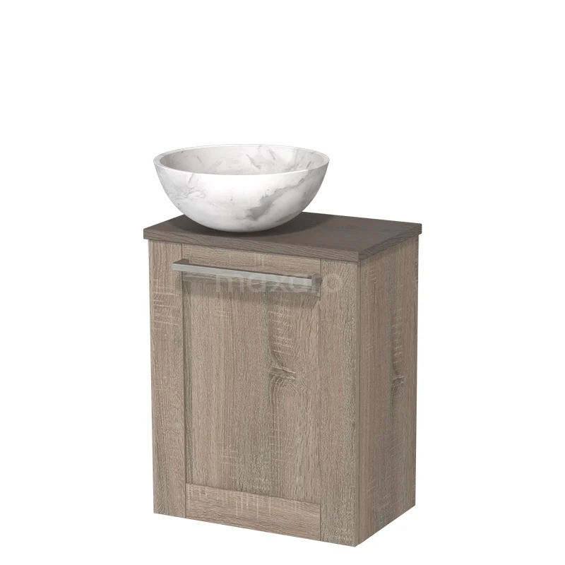 WC-Möbel mit Aufsatzwaschbecken | 41 cm Eiche Rahmenfront Weißer Marmor Aufsatzwaschbecken aus Naturstein Dunkelbraune Eiche Platte
