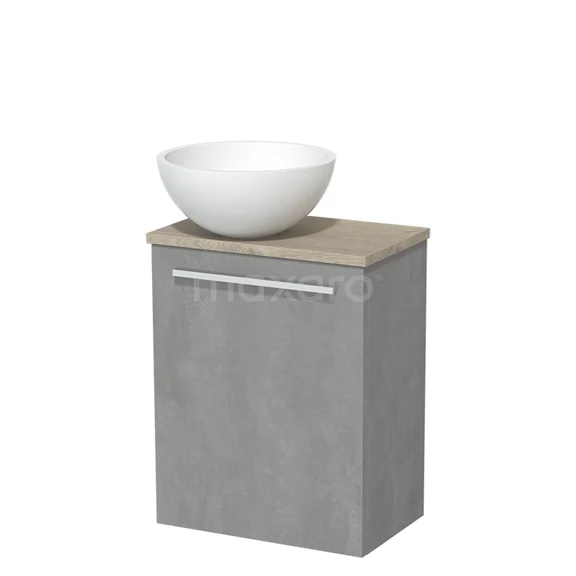 WC-Möbel mit Aufsatzwaschbecken | 41 cm Hellgrauer Beton Glatte Front Matt Weiß Aufsatzwaschbecken Hellgraue Eiche Platte
