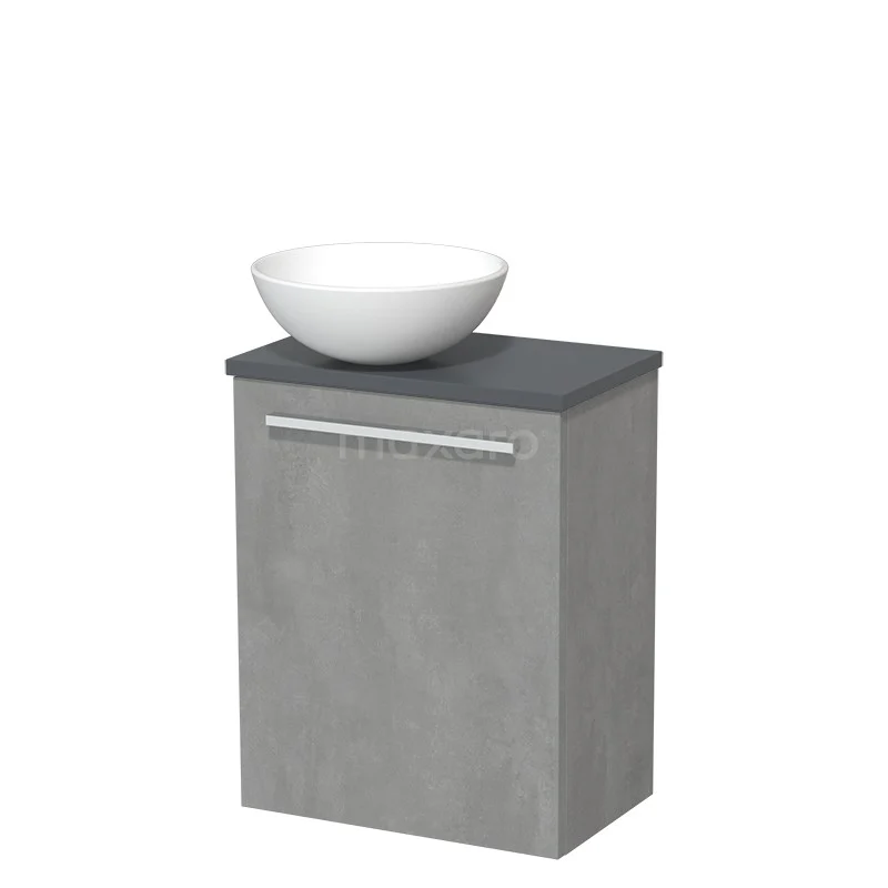 WC-Möbel mit Aufsatzwaschbecken | 41 cm hellgrauer Beton glatte Front Matt Weiß Keramik Aufsatzwaschbecken Dunkelgrau Platte