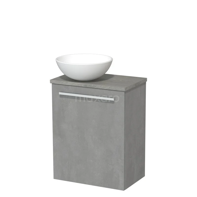 WC-Möbel mit Aufsatzwaschbecken | 41 cm Hellgrauer Beton Glatte Front Matt Weiß Keramik-Aufsatzwaschbecken Graue Eiche Platte