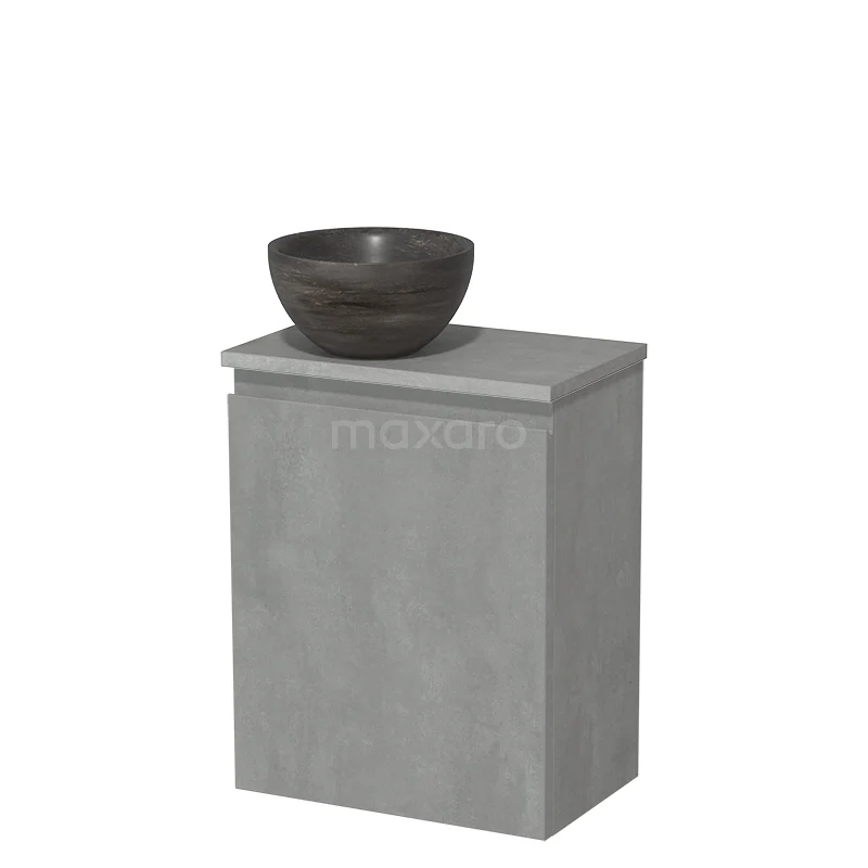 WC-Möbel mit Aufsatzwaschbecken | 41 cm Hellgrauer Beton Grifflose Front Blaustein Naturstein-Aufsatzwaschbecken Hellgrauer Beton Platte