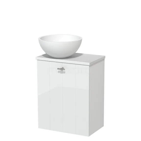 WC-Möbel mit Aufsatzwaschbecken | 41 cm Hochglanz Weiß Lamellenfront Matt Weiß Solid Surface Aufsatzwaschbecken Matt Weiß Platte