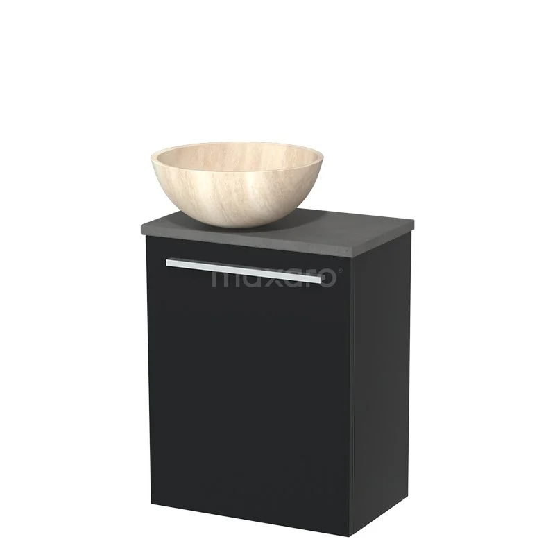 WC-Möbel mit Aufsatzwaschbecken | 41 cm Matt Schwarz Glatte Front Aufsatzwaschbecken aus Travertin Naturstein Dunkelgrauer Beton