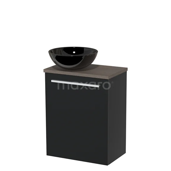 WC-Möbel mit Aufsatzwaschbecken | 41 cm Matt Schwarz Glatte Front Hochglanz Schwarz Aufsatzwaschbecken aus Keramik Dunkelbraune Eiche