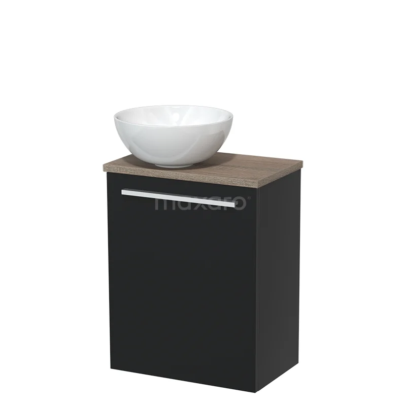 WC-Möbel mit Aufsatzwaschbecken | 41 cm Matt Schwarz Glatte Front Hochglanz Weiß Keramik Aufsatzwaschbecken Eiche Platte