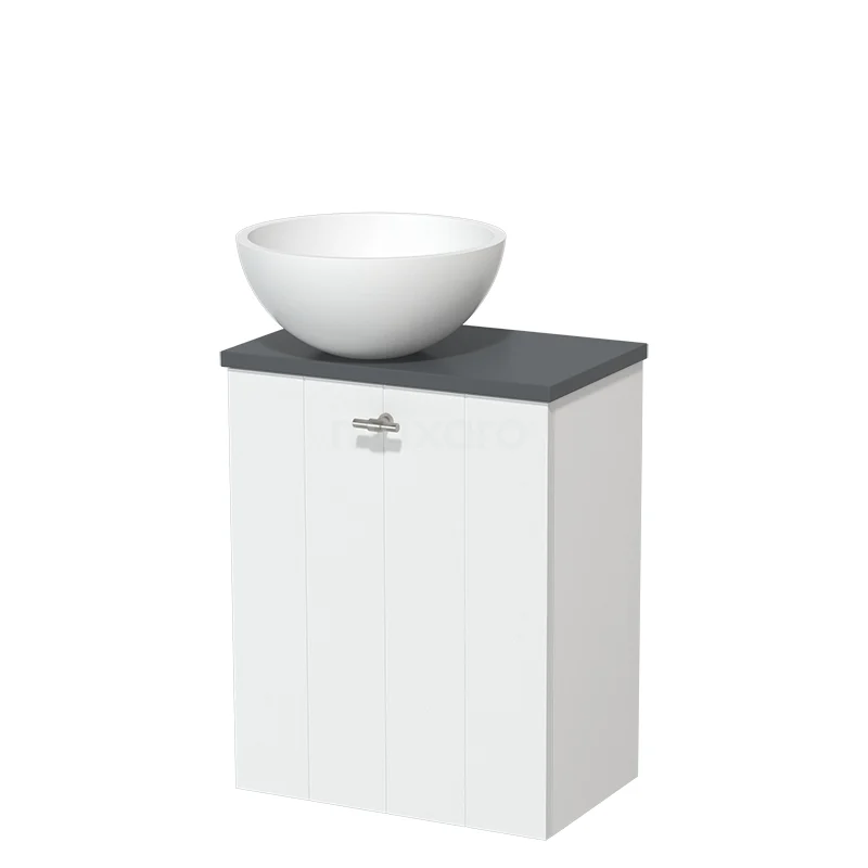 WC-Möbel mit Aufsatzwaschbecken | 41 cm Matt Weiß Lamellen Front Matt Weiß Solid Surface Aufsatzwaschbecken Dunkelgrau Platte