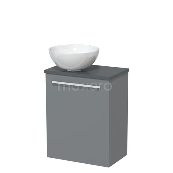 WC-Möbel mit Aufsatzwaschbecken | 41 cm Mittelgrau Glatte Front Hochglanz Weiß Keramik-Aufsatzwaschbecken Dunkelgrau Platte