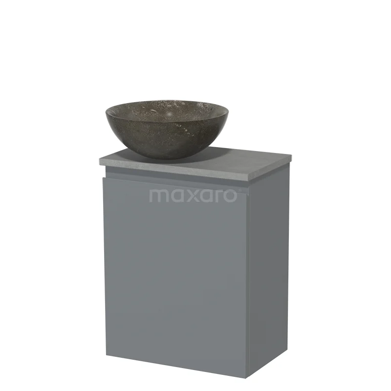 WC-Möbel mit Aufsatzwaschbecken | 41 cm Mittelgrau Grifflose Front Blaustein Naturstein Aufsatzwaschbecken Hellgrauer Beton Platte