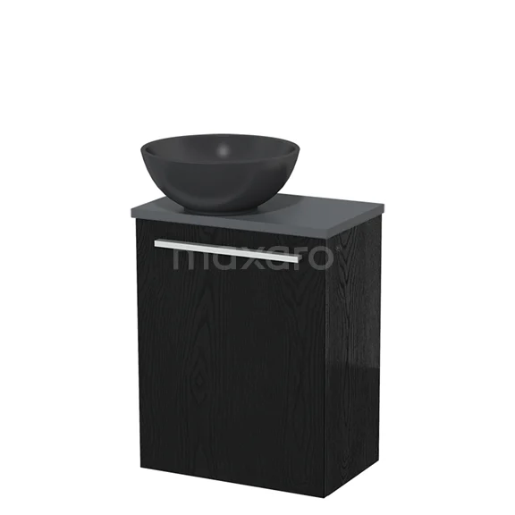 WC-Möbel mit Aufsatzwaschbecken | 41 cm Schwarze Eiche Glatte Front Matt Schwarz Quarz Aufsatzwaschbecken Dunkelgrau Platte