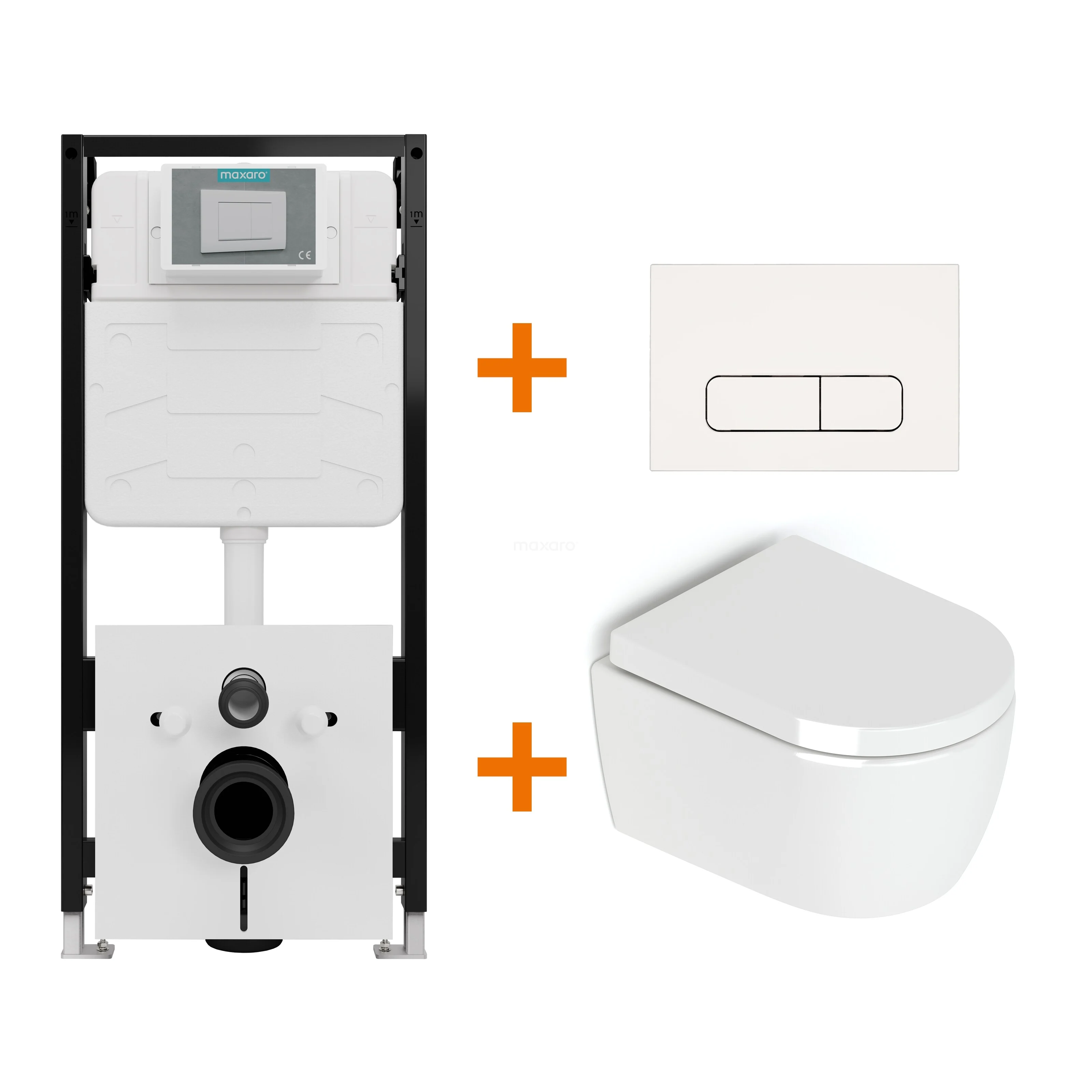 WC-Set Hochglanz Weiß ohne Spülrand + Maxaro Flush Slim Pro Unterputzspülkasten mit Schallschutz