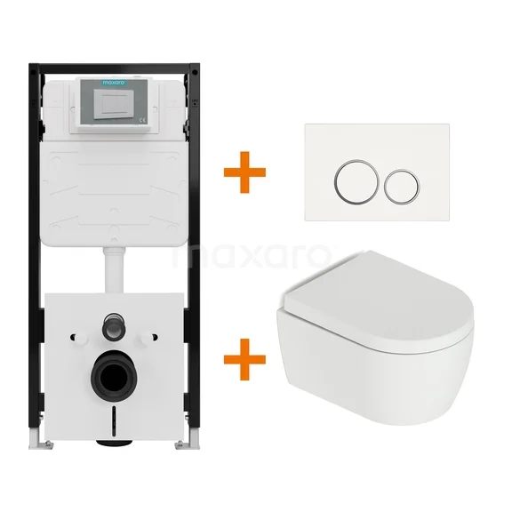 Toiletset Mat wit met Spoelrand + Maxaro Flush Pro inbouwreservoir met geluidsisolatie