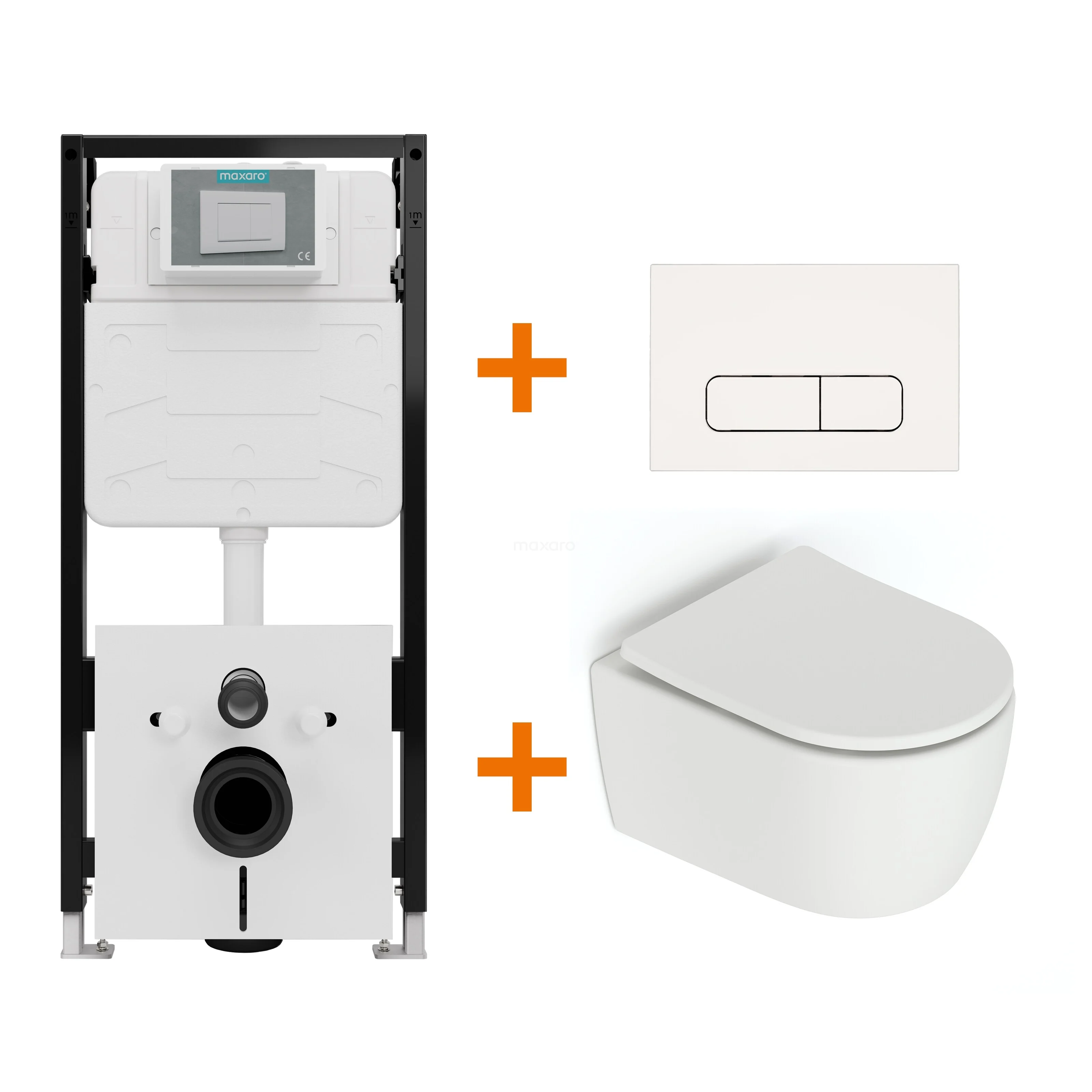 WC-Set Matt Weiß ohne Spülrand + Maxaro Flush Pro Unterputzspülkasten mit Schallschutz
