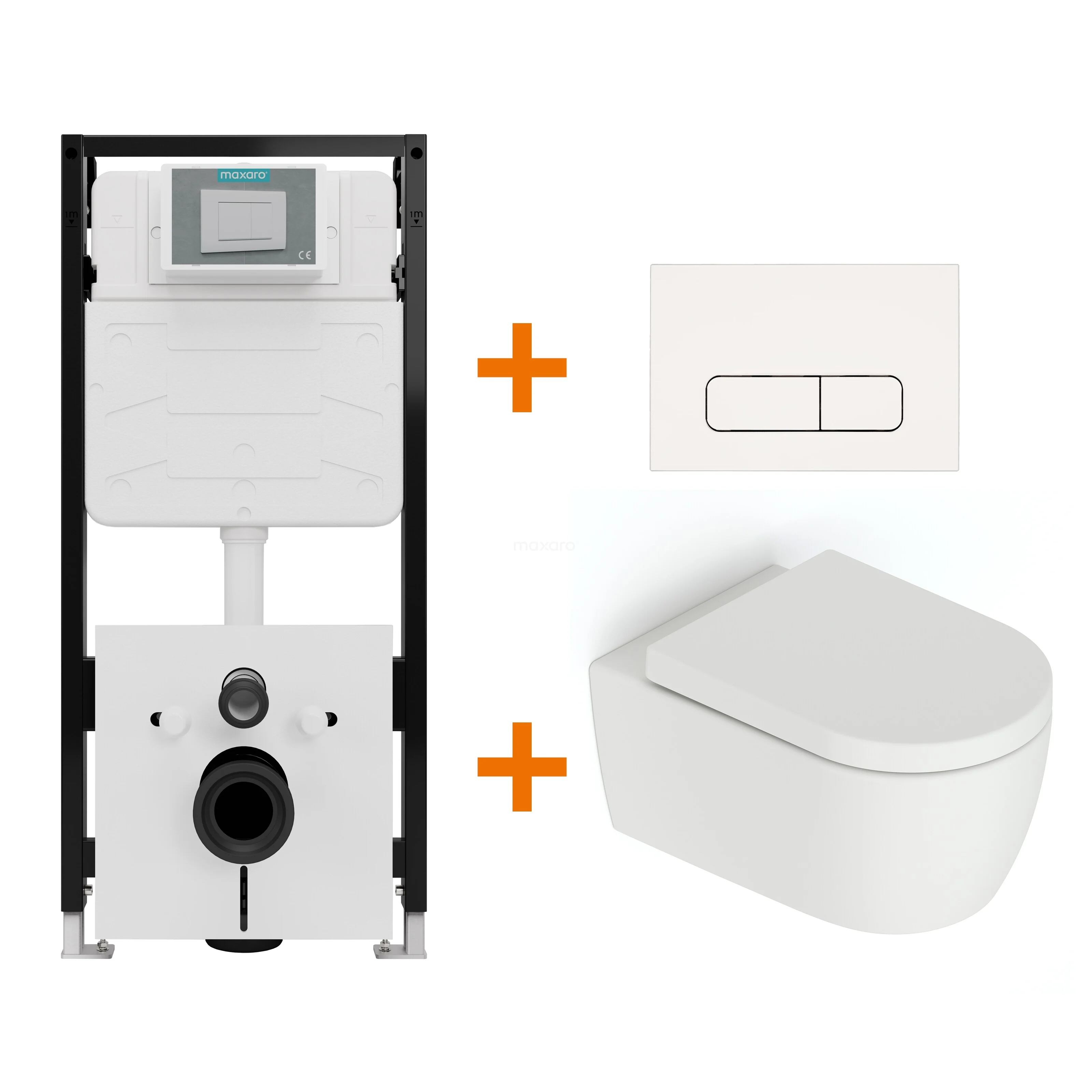 WC-Set Matt Weiß ohne Spülrand + Maxaro Flush Slim Pro Unterputzspülkasten mit Geräuschisolierung