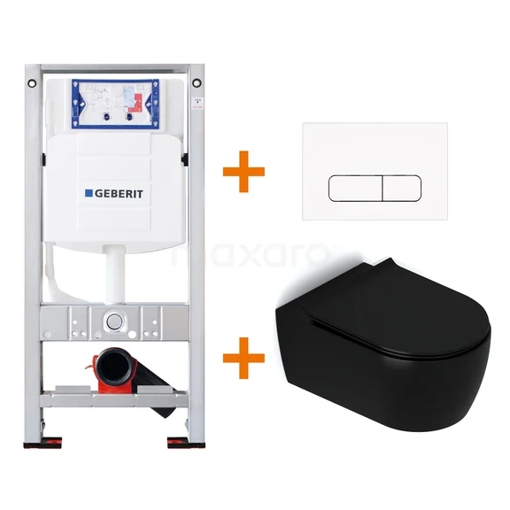 WC-Set Matt Schwarz mit Rand + Geberit UP320 Unterputzspülkasten mit Schalldämmung