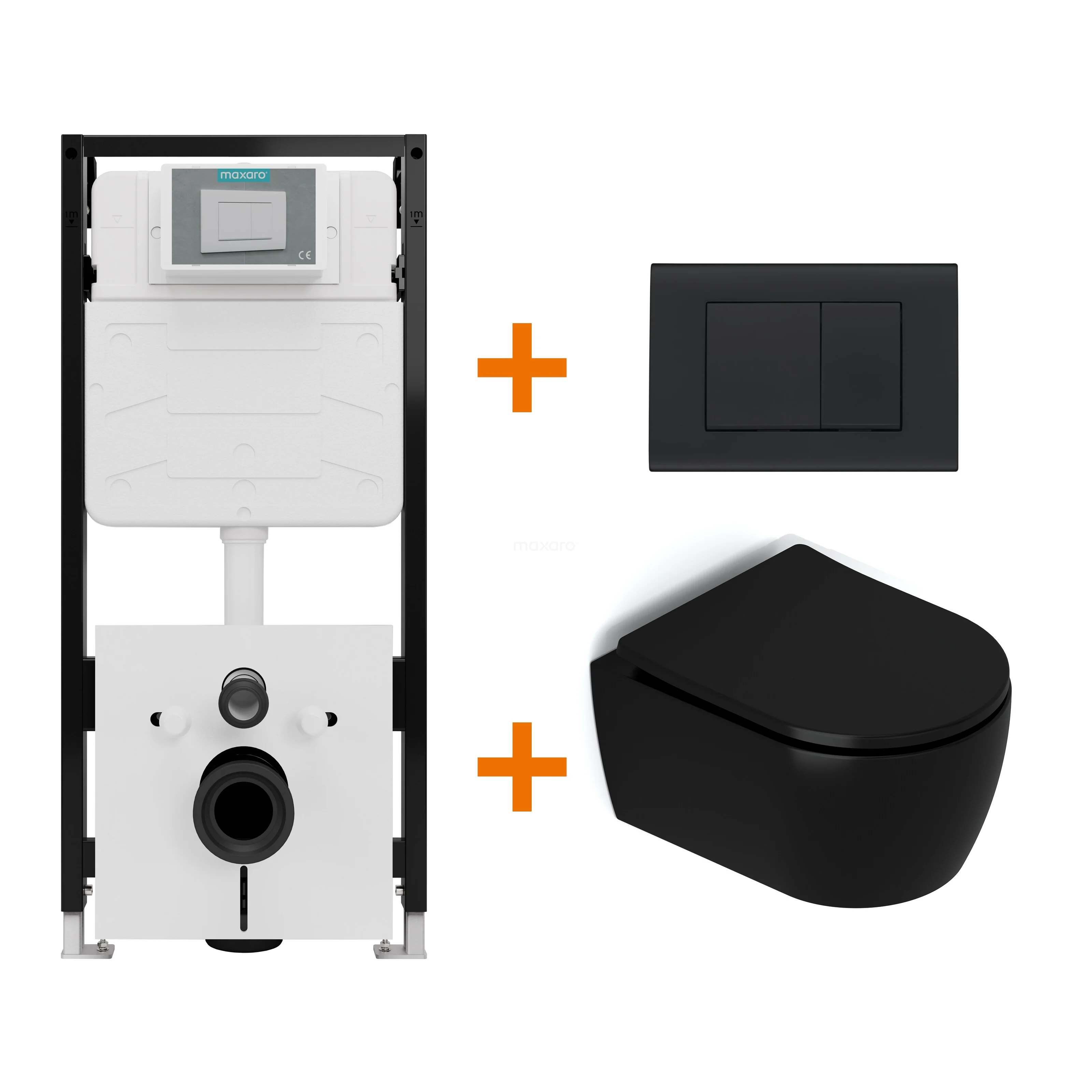 WC-Set Matt Schwarz mit Rand + Maxaro Flush Slim Pro Unterputzspülkasten mit Schalldämmung