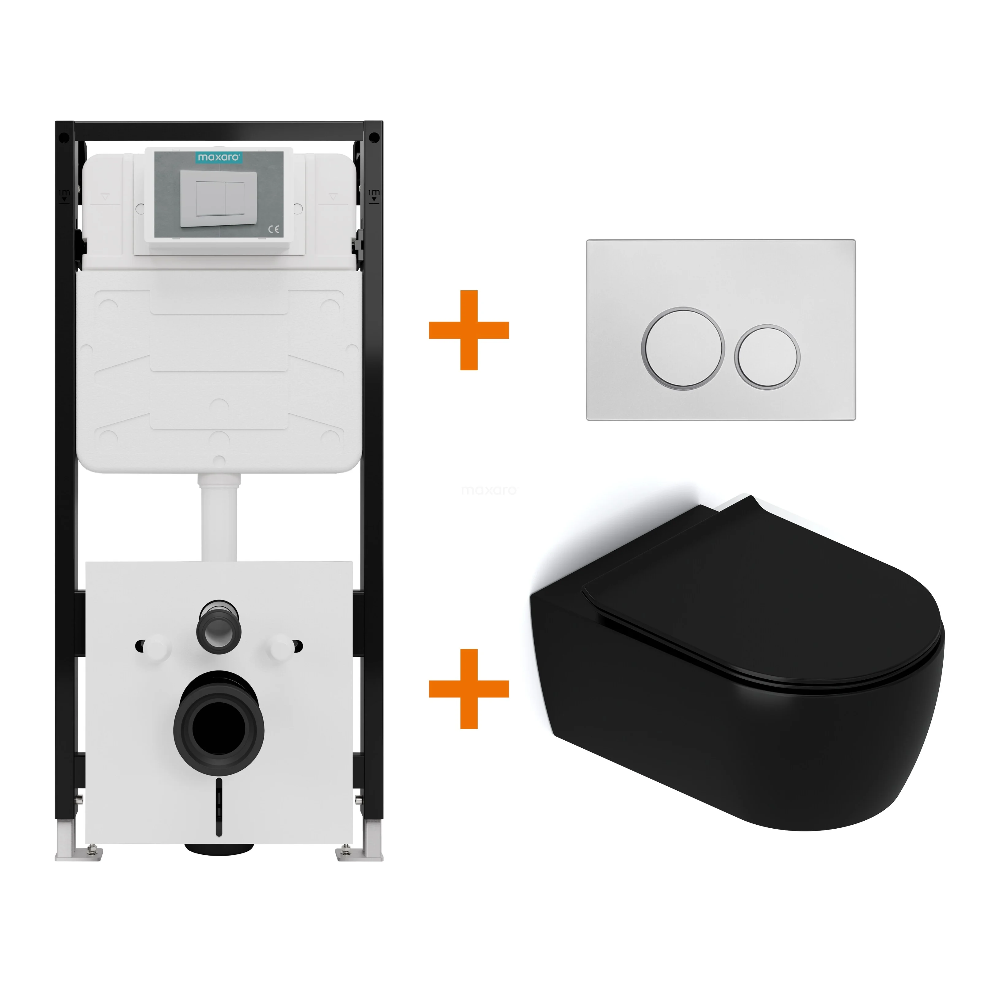 WC-Set Matt Schwarz mit Rand + Maxaro Flush Slim Pro Unterputzspülkasten mit Schalldämmung