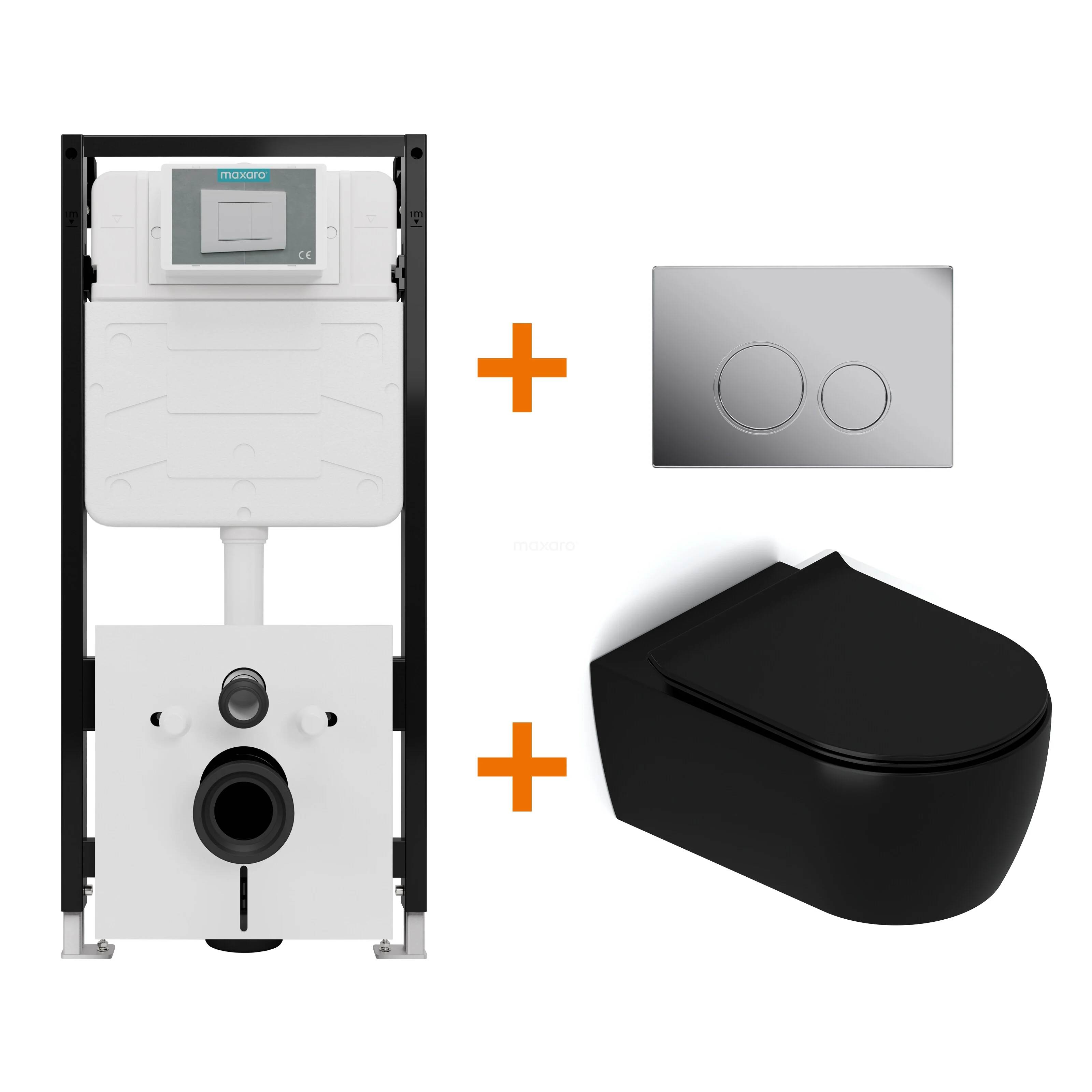 WC-Set Matt Schwarz mit Rand + Maxaro Flush Slim Pro Unterputzspülkasten mit Schalldämmung