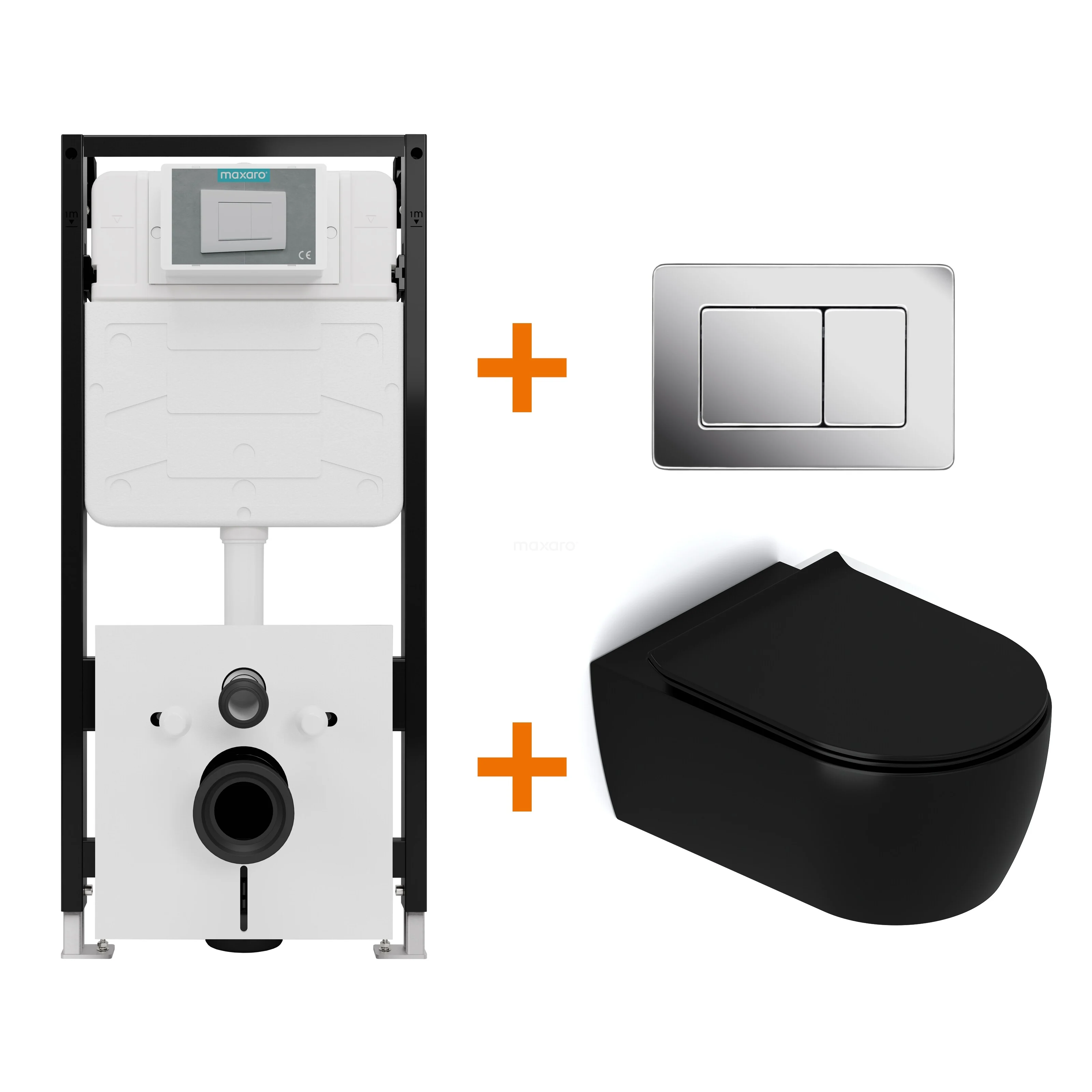 WC-Set Matt Schwarz mit Rand + Maxaro Flush Slim Pro Unterputzspülkasten mit Schalldämmung