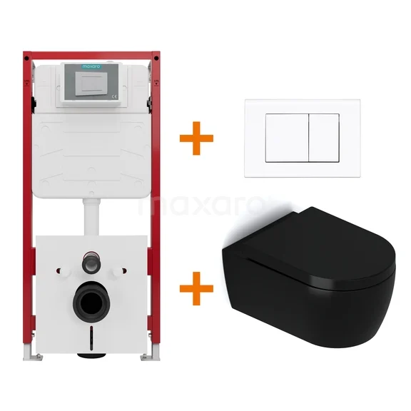 WC-Set Matt Schwarz mit Rand + Maxaro Flush Unterputzspülkasten