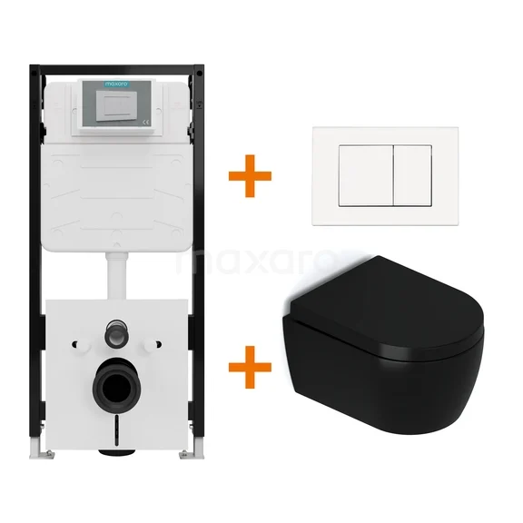 WC-Set Matt Schwarz mit Spülrand + Maxaro Flush Slim Pro Unterputzspülkasten mit Geräuschisolierung
