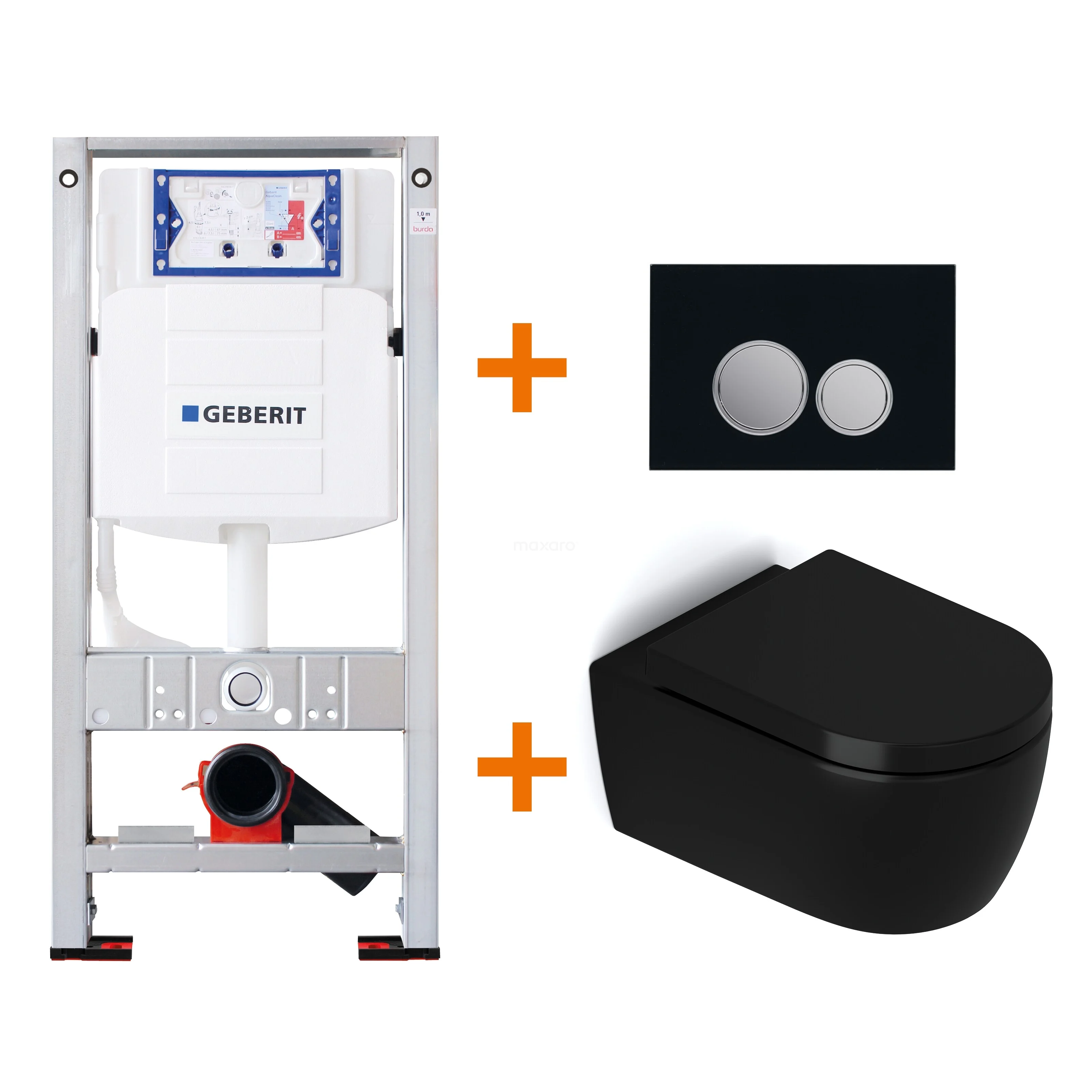 WC-Set Matt Schwarz ohne Rand + Geberit UP320 Unterputzspülkasten mit Schalldämmung