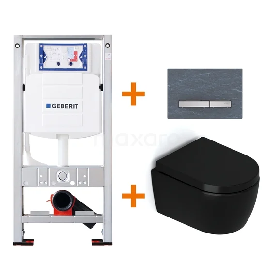 WC-Set Matt Schwarz ohne Rand + Geberit UP320 Unterputzspülkasten mit Schalldämmung