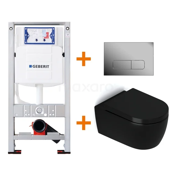 WC-Set Matt Schwarz ohne Rand + Geberit UP320 Unterputzspülkasten mit Schalldämmung
