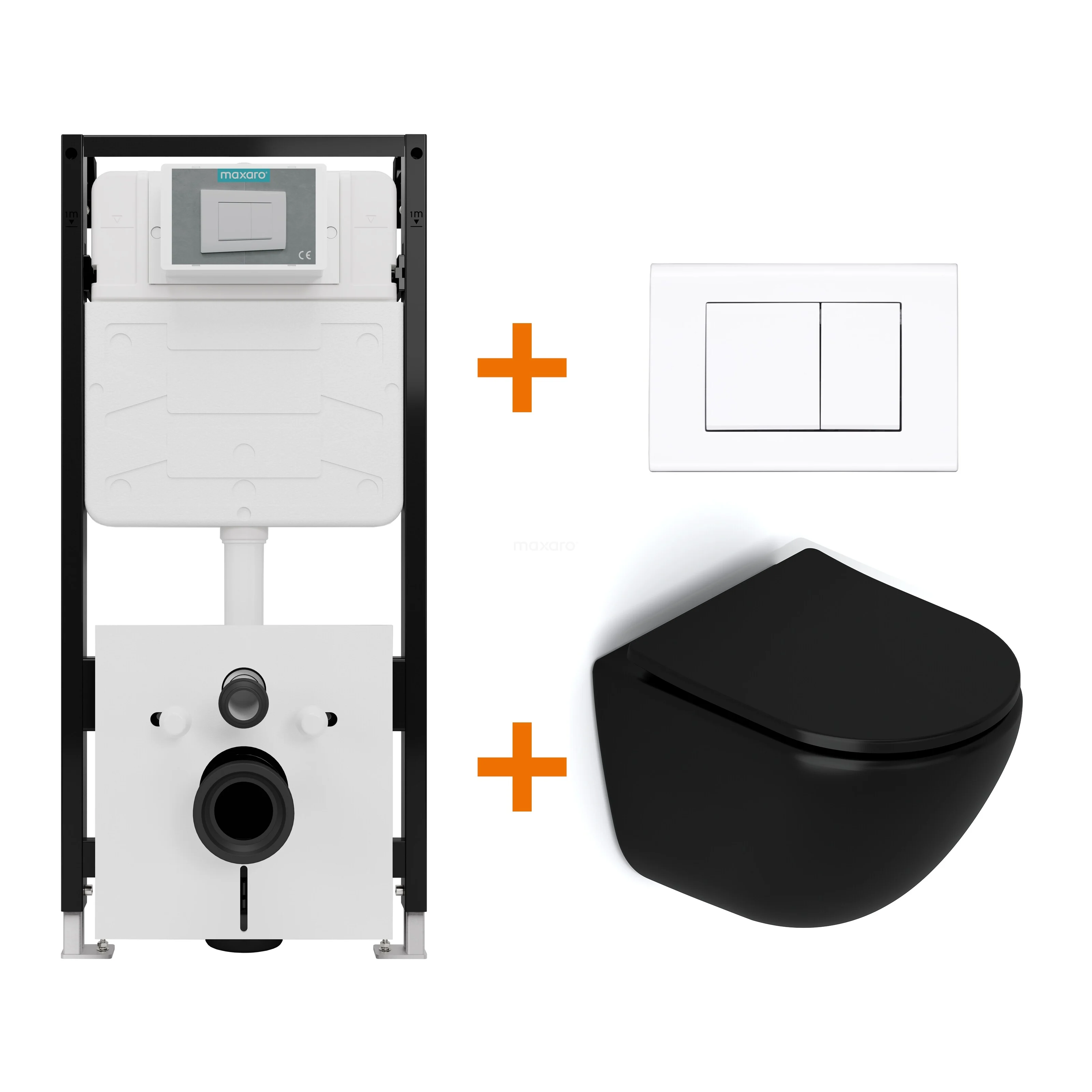 WC-Set Matt Schwarz ohne Rand + Maxaro Flush Slim Pro Unterputzspülkasten mit Schalldämmung