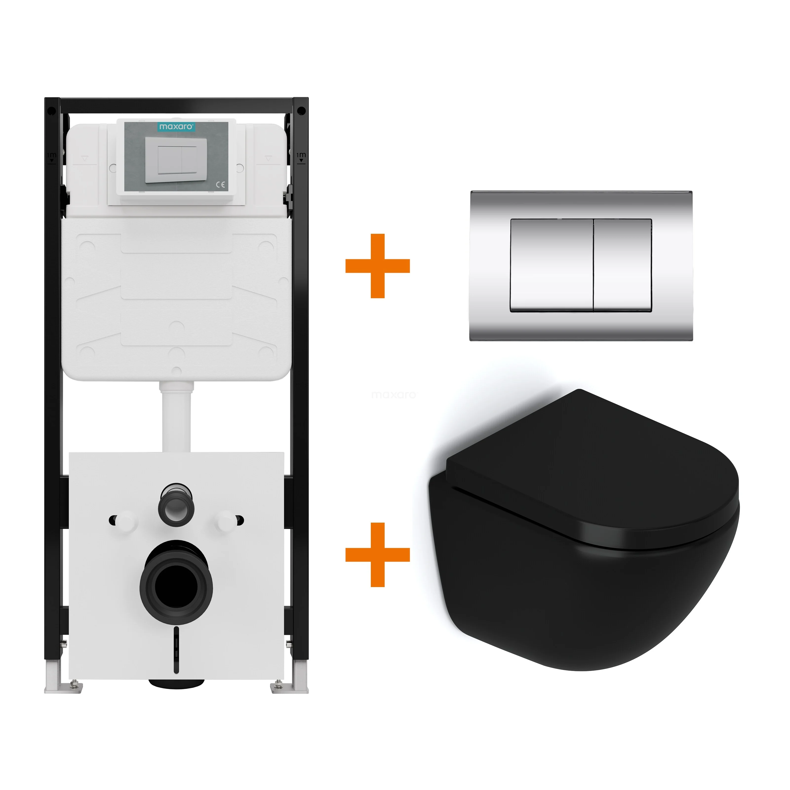WC-Set Matt Schwarz ohne Rand + Maxaro Flush Slim Pro Unterputzspülkasten mit Schalldämmung