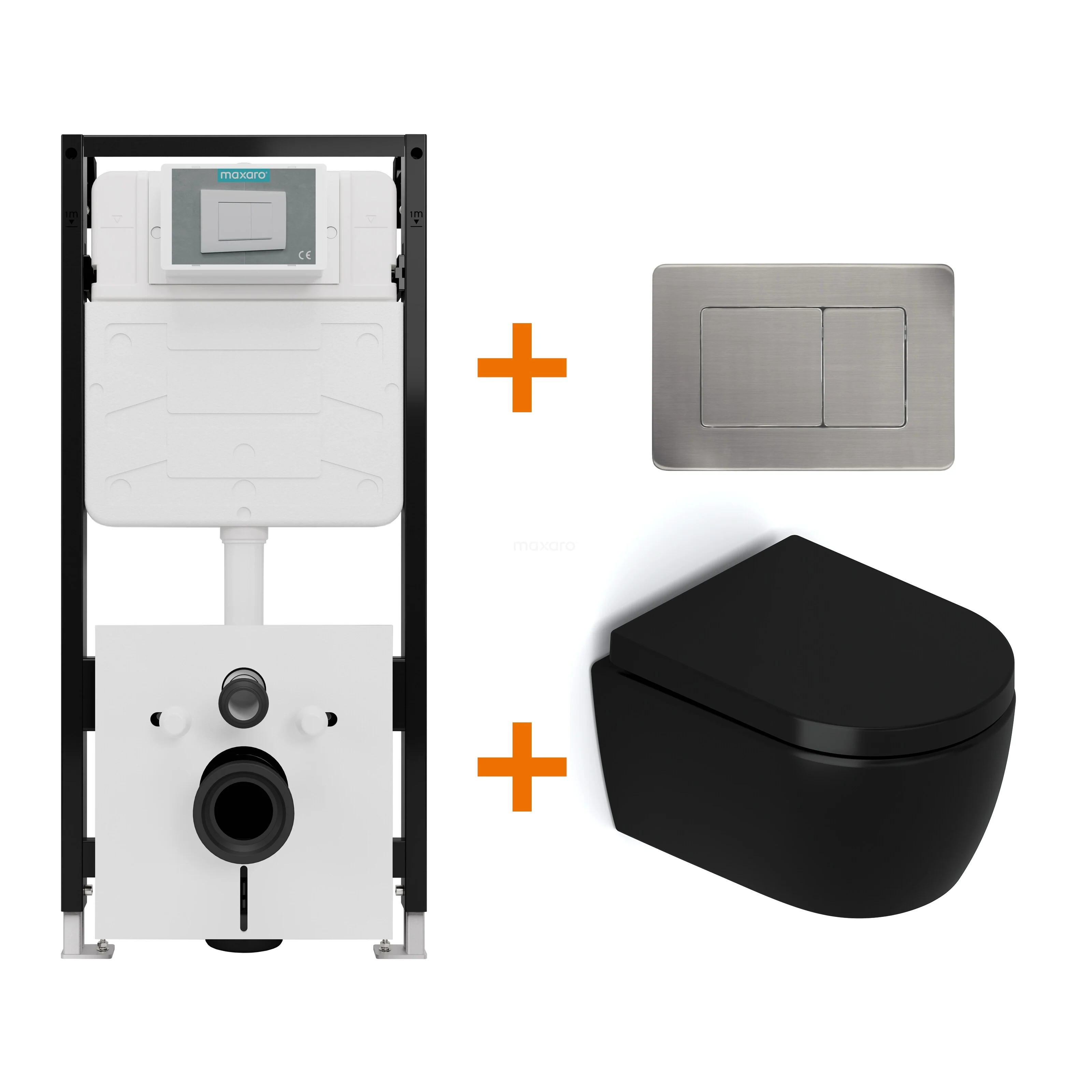 WC-Set Matt Schwarz ohne Rand + Maxaro Flush Slim Pro Unterputzspülkasten mit Schalldämmung