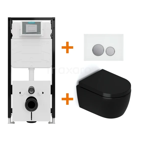 WC-Set Matt Schwarz ohne Rand + Maxaro Flush Slim Pro Unterputzspülkasten mit Schalldämmung