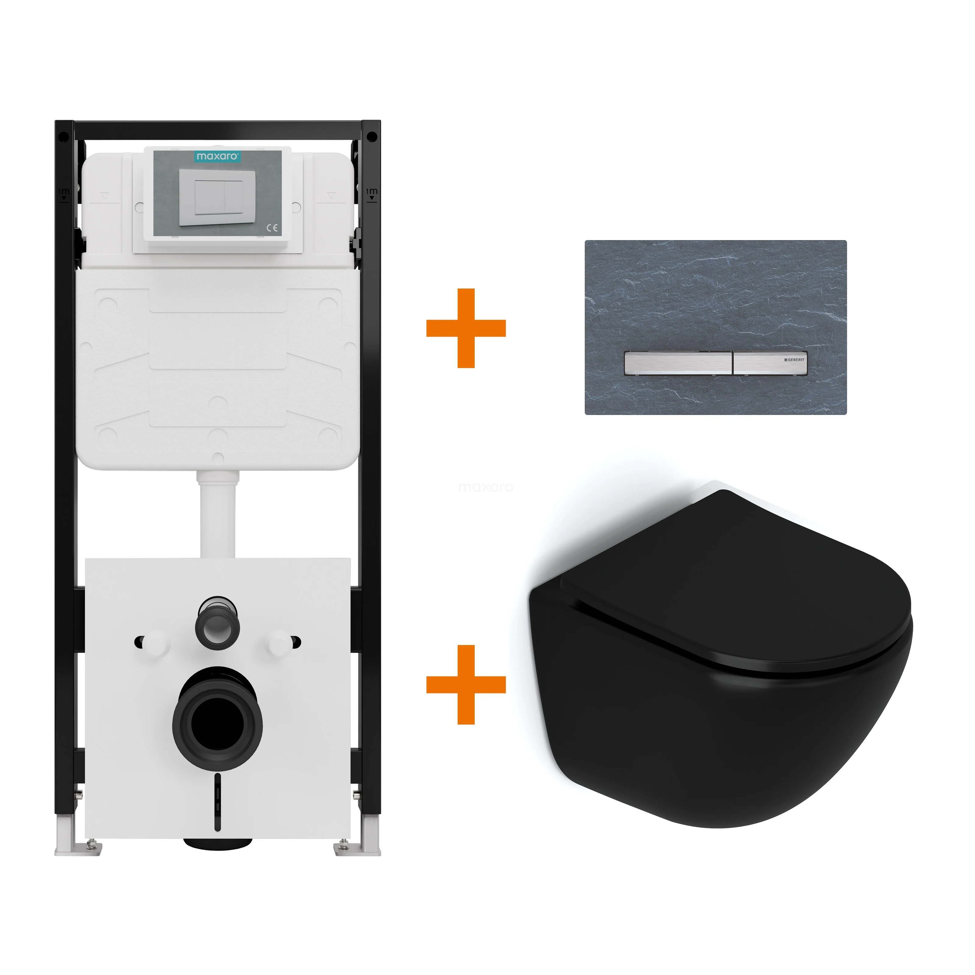 WC-Set Matt Schwarz ohne Rand + Maxaro Flush Slim Pro Unterputzspülkasten mit Schalldämmung