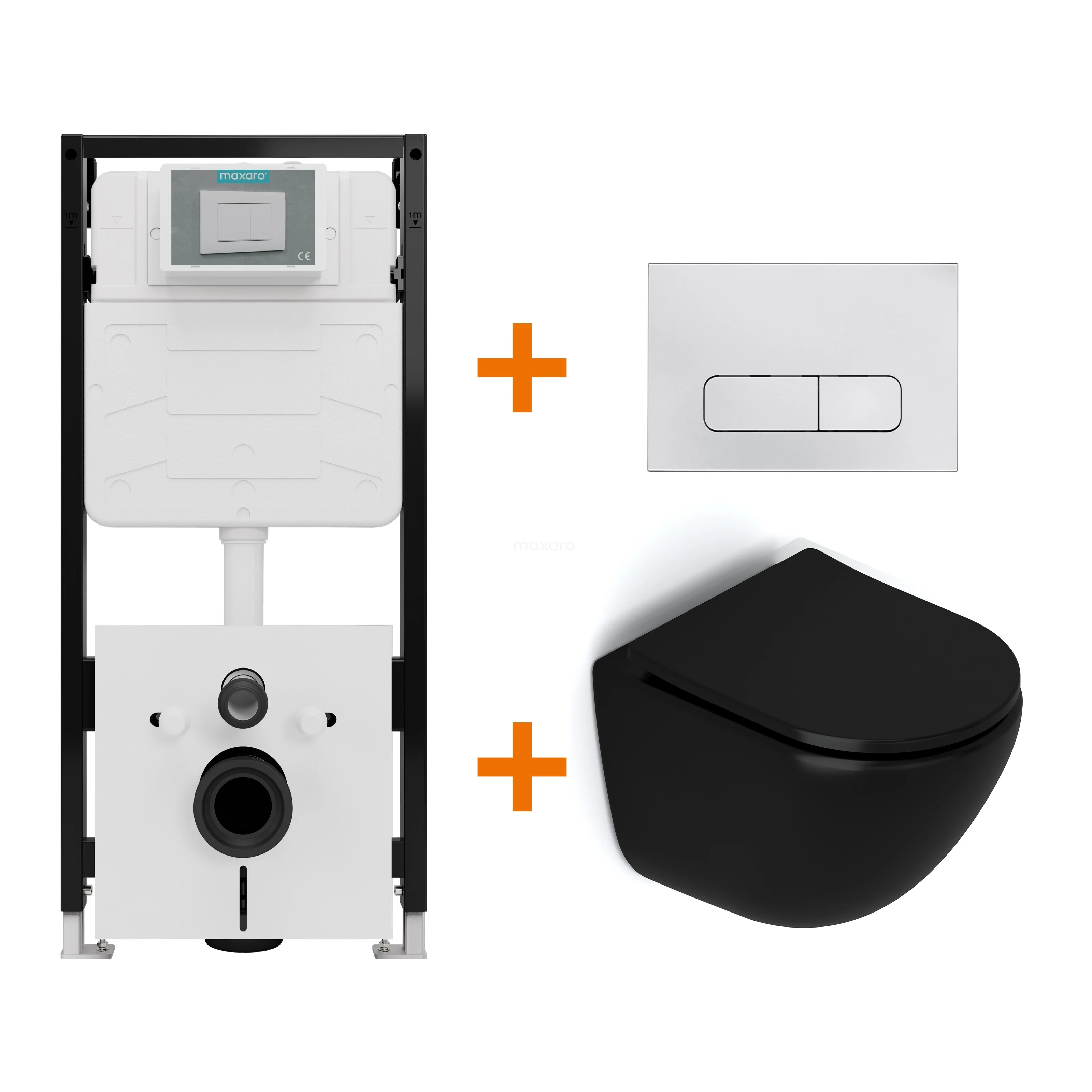 WC-Set Matt Schwarz ohne Rand + Unterputzspülkasten Maxaro Flush Pro mit Schalldämmung