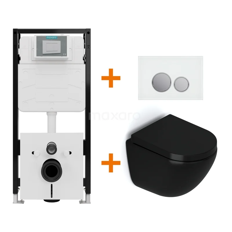WC-Set Matt Schwarz ohne Rand + Unterputzspülkasten Maxaro Flush Pro mit Schalldämmung