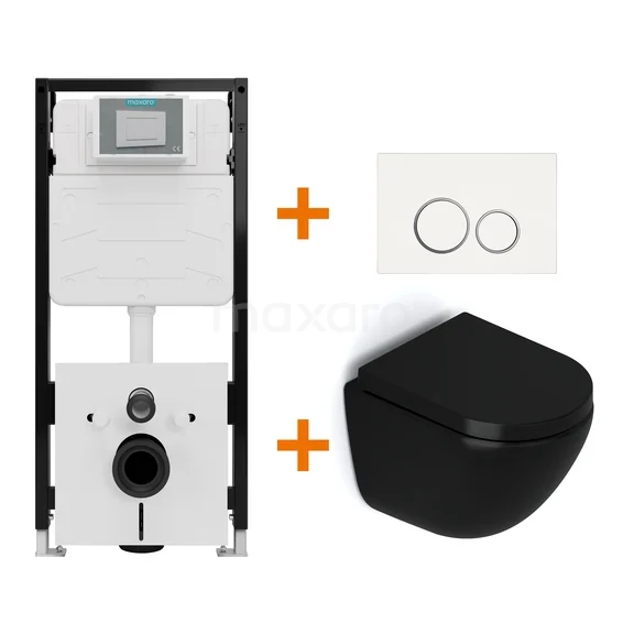 WC-Set Matt Schwarz ohne Spülrand + Maxaro Flush Pro Unterputzspülkasten mit Geräuschisolierung
